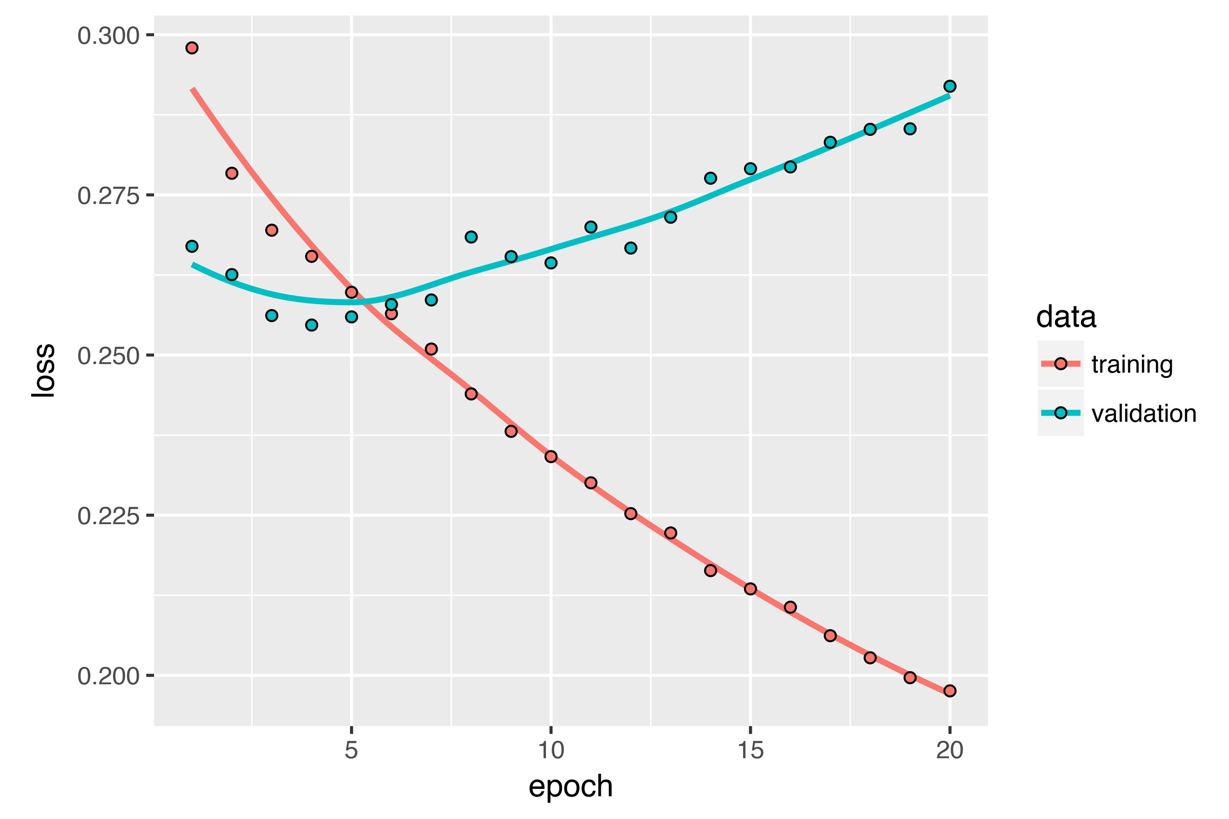 The plot below shows the results. Success! You’re no longer overfitting during the first 20 epochs. But although you have more stable evaluation scores, your best scores aren’t much lower than they were previously.