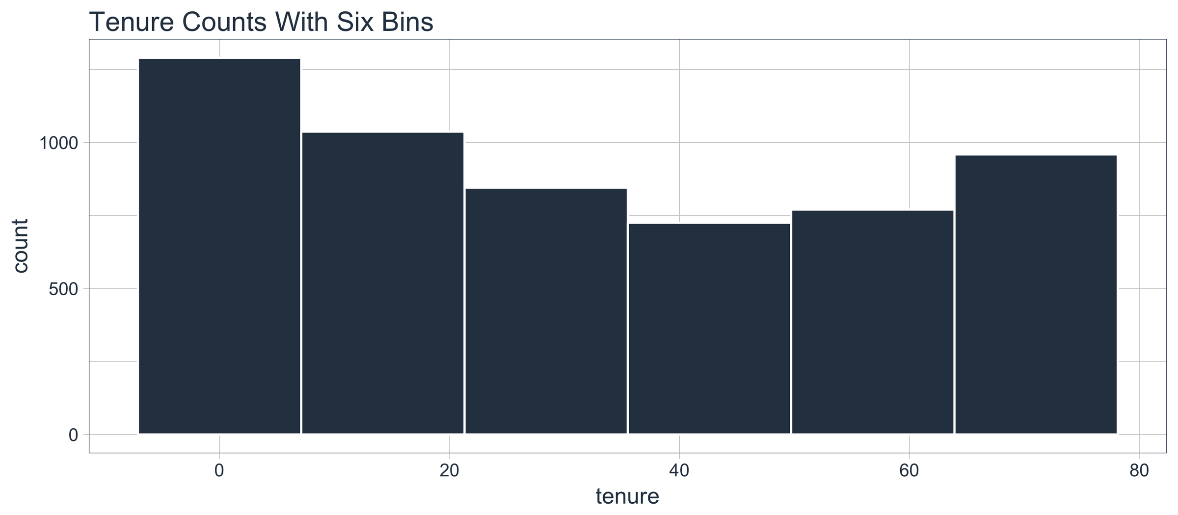 We can split into six cohorts that divide up the user base by tenure in roughly one year (12 month) increments. This should help the ML algorithm detect if a group is more/less susceptible to customer churn.